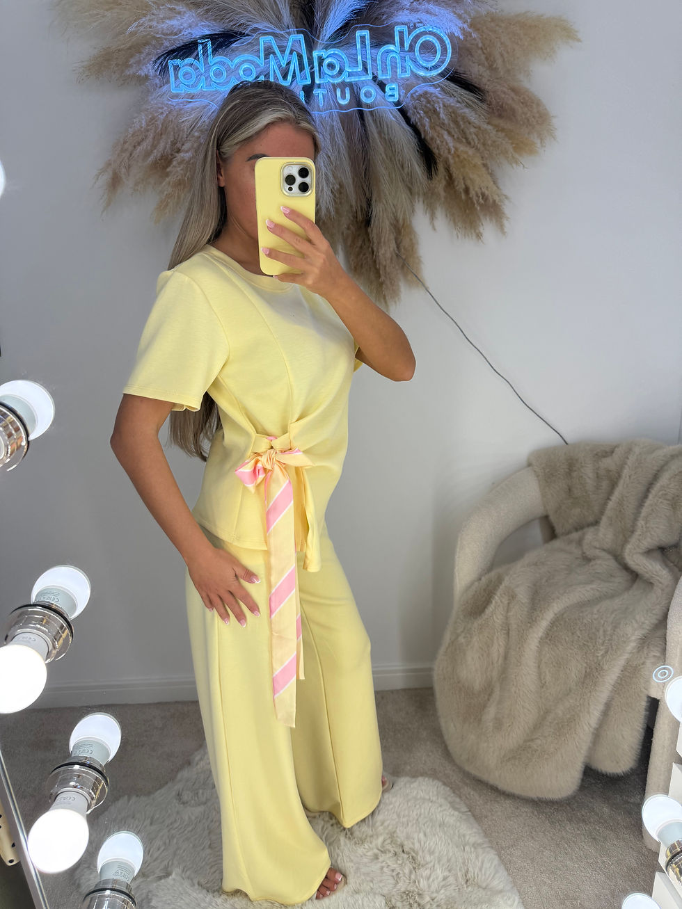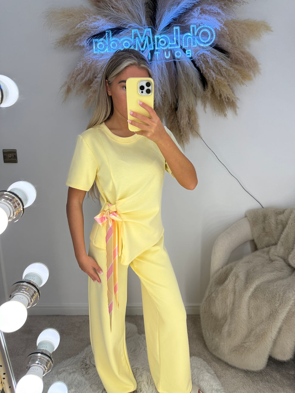 YELLOW CINCHED WAIST FLARE TROUSER CO-ORD